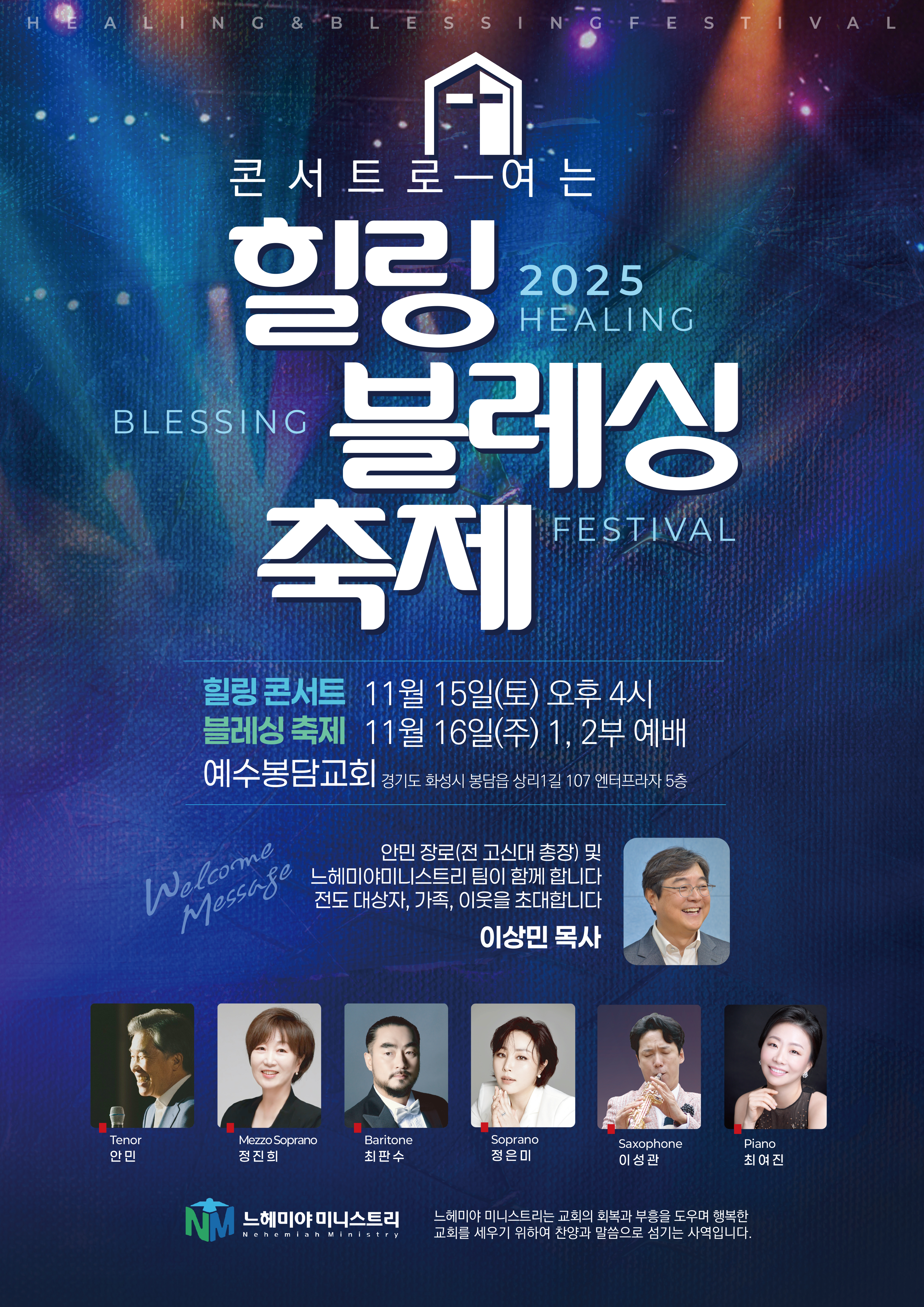 "예수봉담교회를 개척한 이상민목사님은 제가 안산동산교회를 개척해서39년 목회하는 동안 가장 부흥할때 중심역할을 해주셨던 정갑신 목사의 아끼는 제자입니다.정갑신목사는 제가 아끼고 사랑하는 제자입니다. 안산동산교회와 예수향남교회를 어떻게 전도와 양육으로 세워왔는지를 잘아는 이상민목사님을 통해 봉담주민들을 예수안에서 행복한 가정과 지역사회가 되어가도록 섬기고 꿈과 실력있는 자녀들을 양성할 건강한교회가 될 예수봉담교회를 기쁘게 추천합니다."